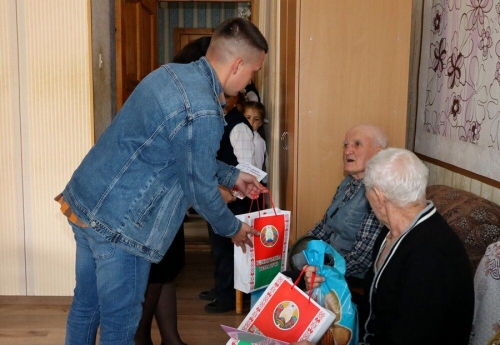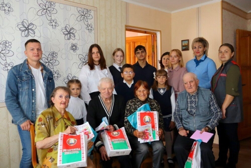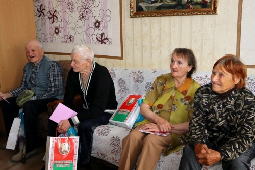 С визитом добра и уважения к подопечным приехали Светлана Николаевна Жамойтина, директор ЦСОН, Илья Ефимов, заместитель директора по идеологической работе ГП " Голынка" и ученики Голыковской школы. Пожелания здоровья и долголетия, сувениры, сладости и концертная программа, подготовленная младшим поколением, вызвали слезы радости и благодарности в лицах пожилых людей.