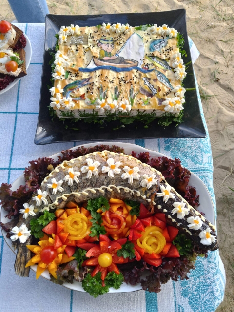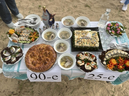 Коллектив ЦСОН Зельвенского района удивил жюри изысками 90-х и 2025: рыбные торт, пирог, рулет, фаршированная щука и конечно же уха.