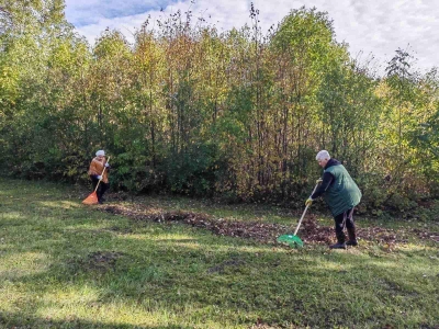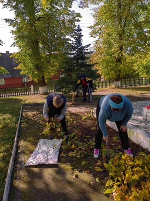 В погожий октябрьский день они собрались дружной компанией, чтобы навести порядок на территории воинского захоронения в д. Горно Каролинского сельсовета. Люди третьего возраста убрали сухую растительность, опавшие листья. А затем почтили память погибших минутой молчания.