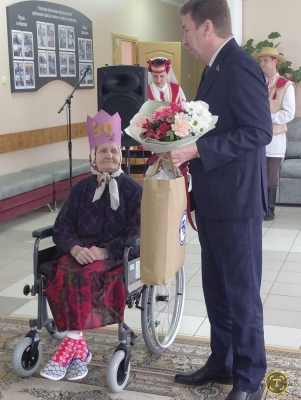 Поздравления от председателя Гродненской областной организации Белорусского профсоюза работников культуры, информации, спорта и туризма Дениса Викторовича Малевича и депутата, заместителя председателя по идеологической работе филиала «Князево» ОАО «Агрокомбинат «Скидельский» Ольги Романовны Чуры, принимали и женщины- мамы и 90 летний юбиляр -Буслович Елена Казимировна.
