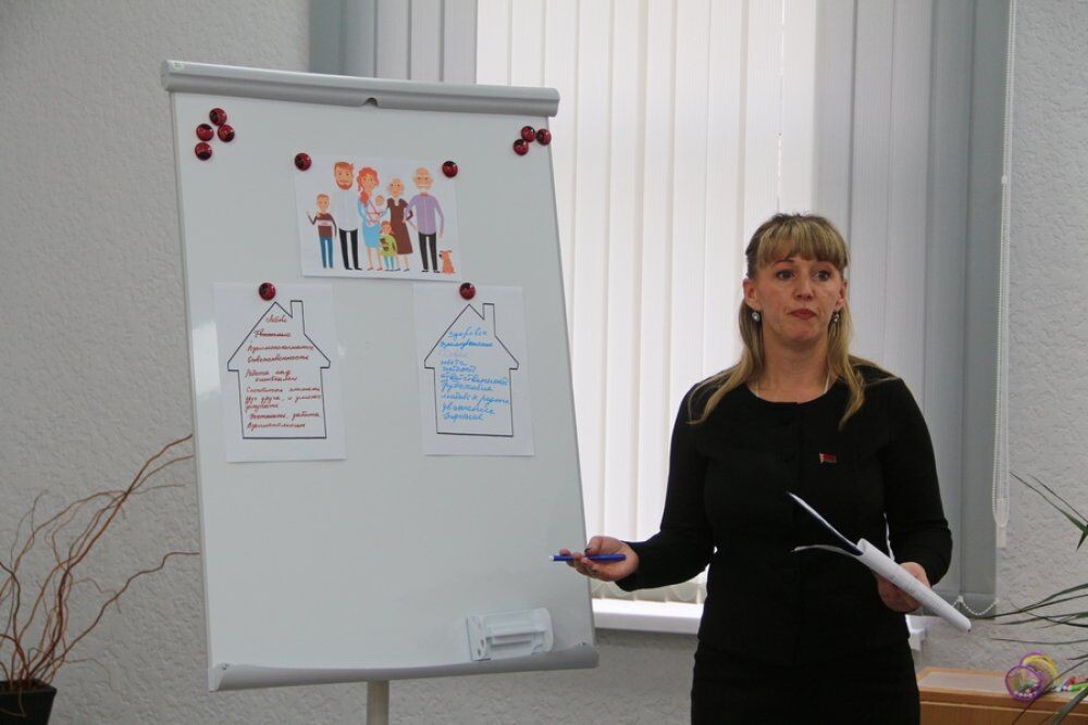 Спикерами выступили Мария Новицкая, главный специалист управления по труду, занятости и социальной защите райисполкома, Светлана Жамойтина, директор ЦСОН, Светлана Ган, педагог-психолог СПЦ, Елена Агей, начальник ЗАГСа, Сергей Архип, врач общей практики районной больницы.