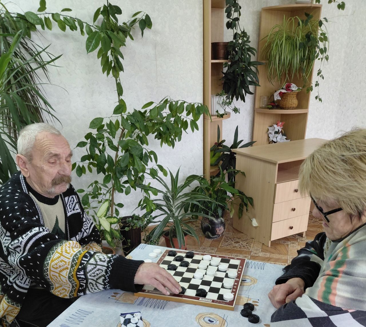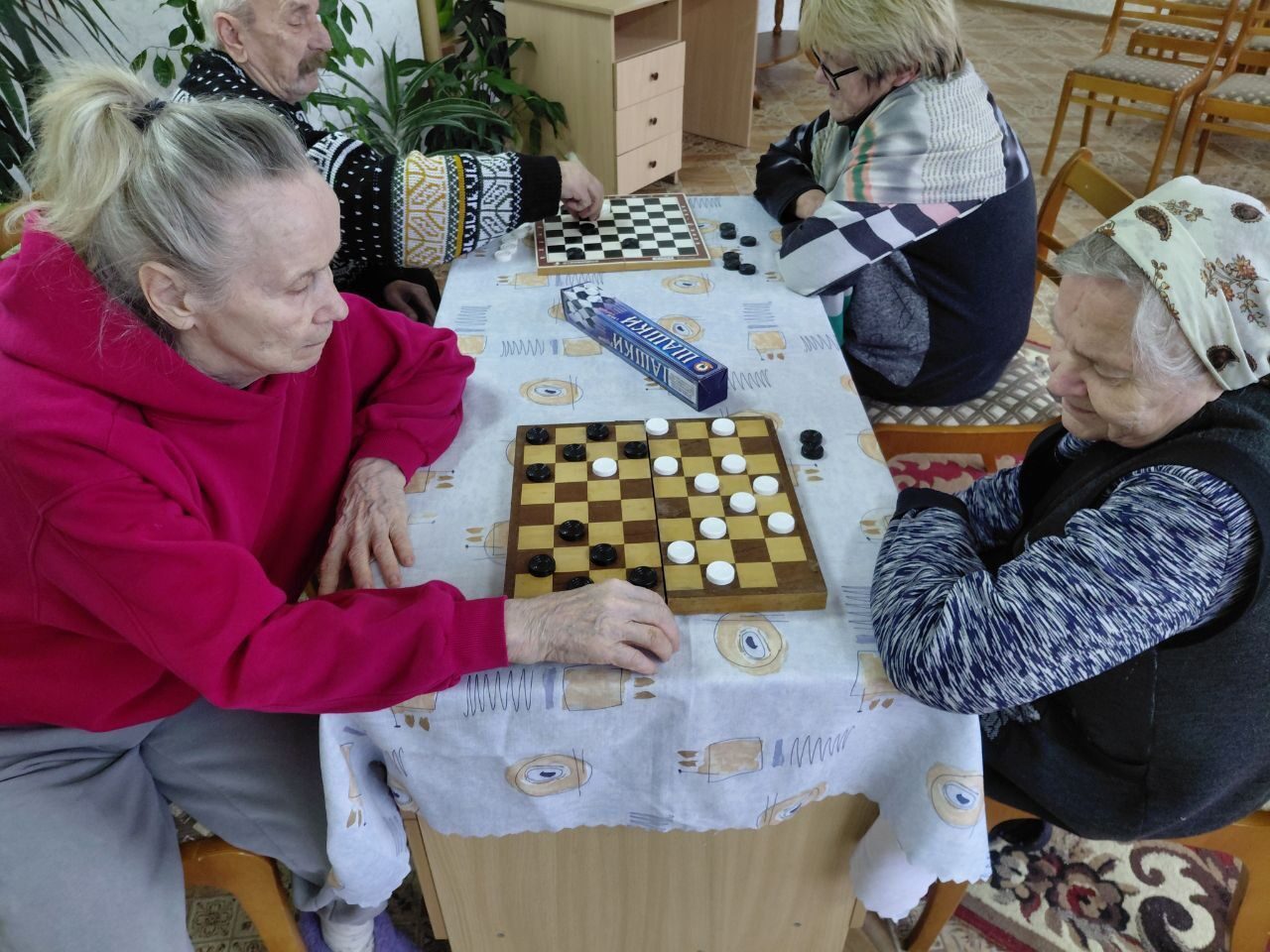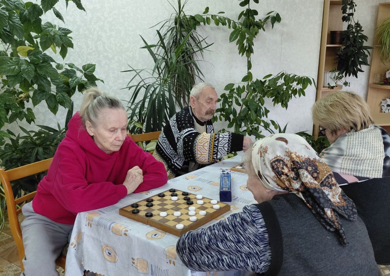 Игры, домино, кроссворды, классические шашки. Всё это полезно для людей пожилого возраста, так как они развивают внимание, логическое мышление, направлены на профилактику деменции и налаживание контакта друг с другом.