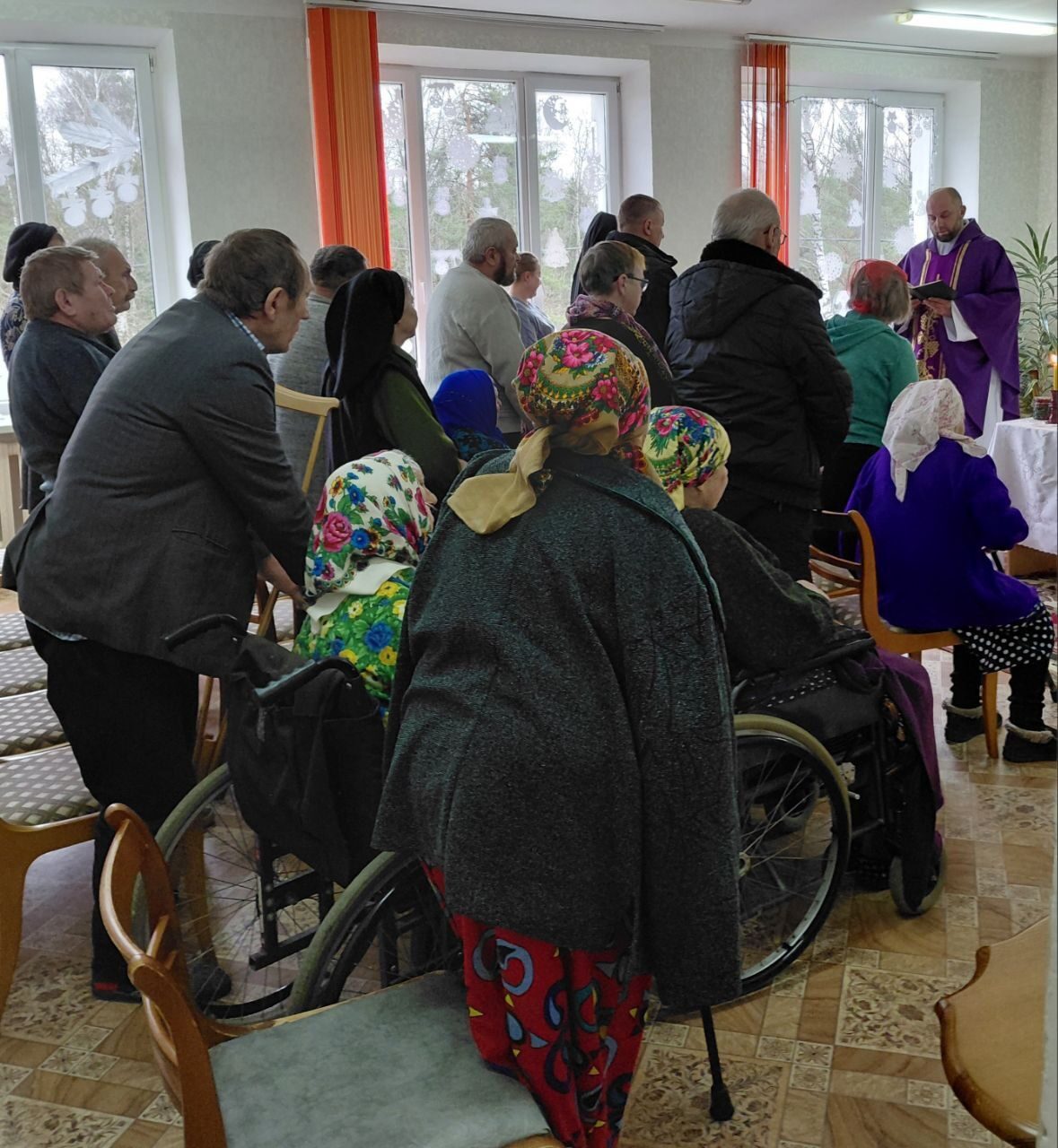 Божественную предрождественскую службу для проживающих пожилых людей провели с молитвой, исповедью и причастием.