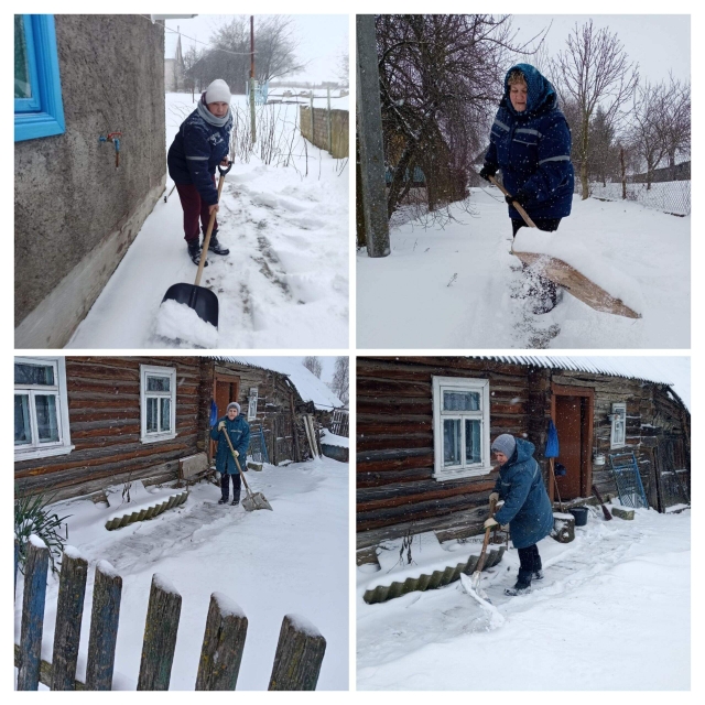 На помощь своевременно приходят работники социальной службы ЦСОН Зельвенского района. Они с самого утра расчистили дорожки во дворах, возле домов, ступенек. И эту ситуацию будут держать под контролем.