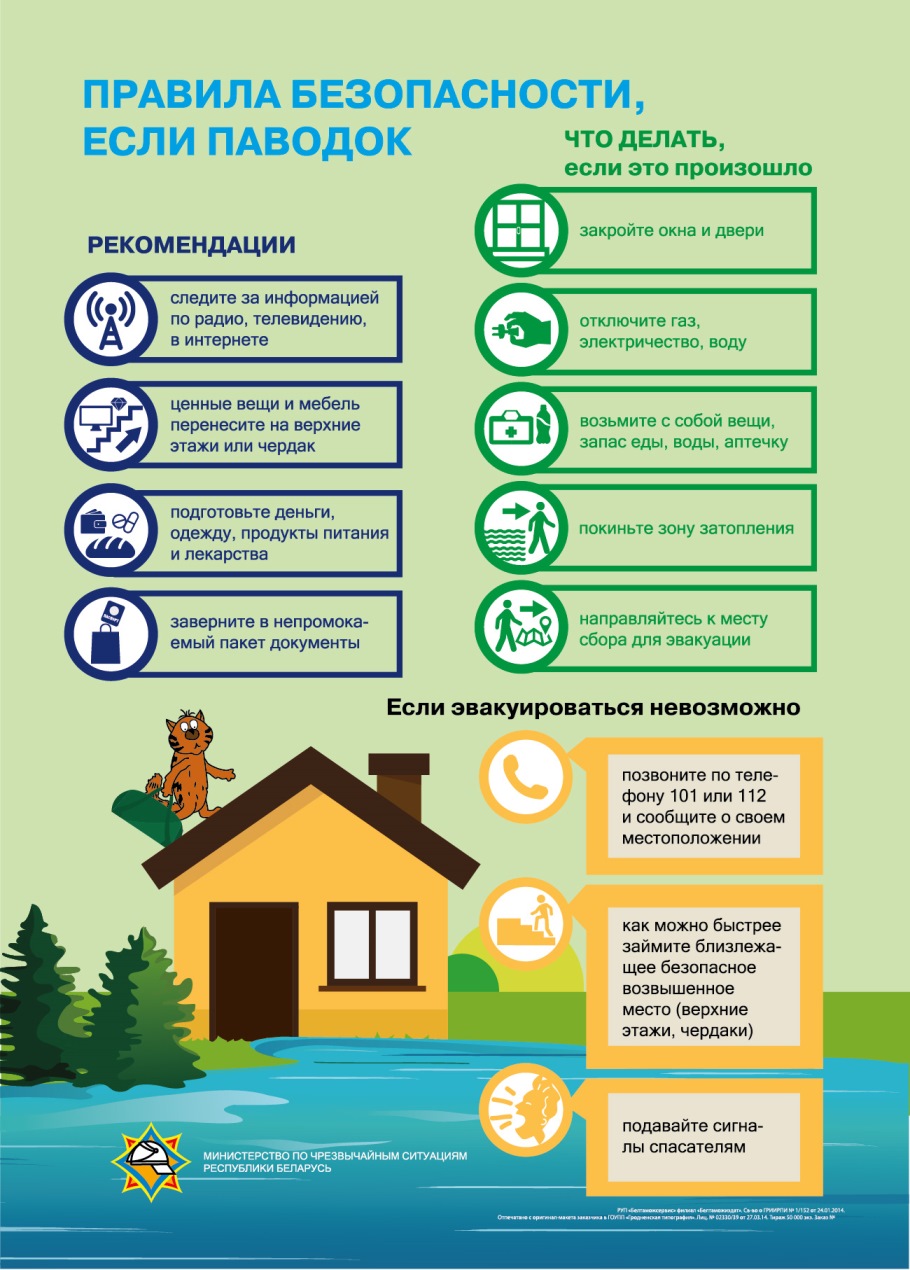 - соблюдайте меры общественной и личной безопасности в период паводка.