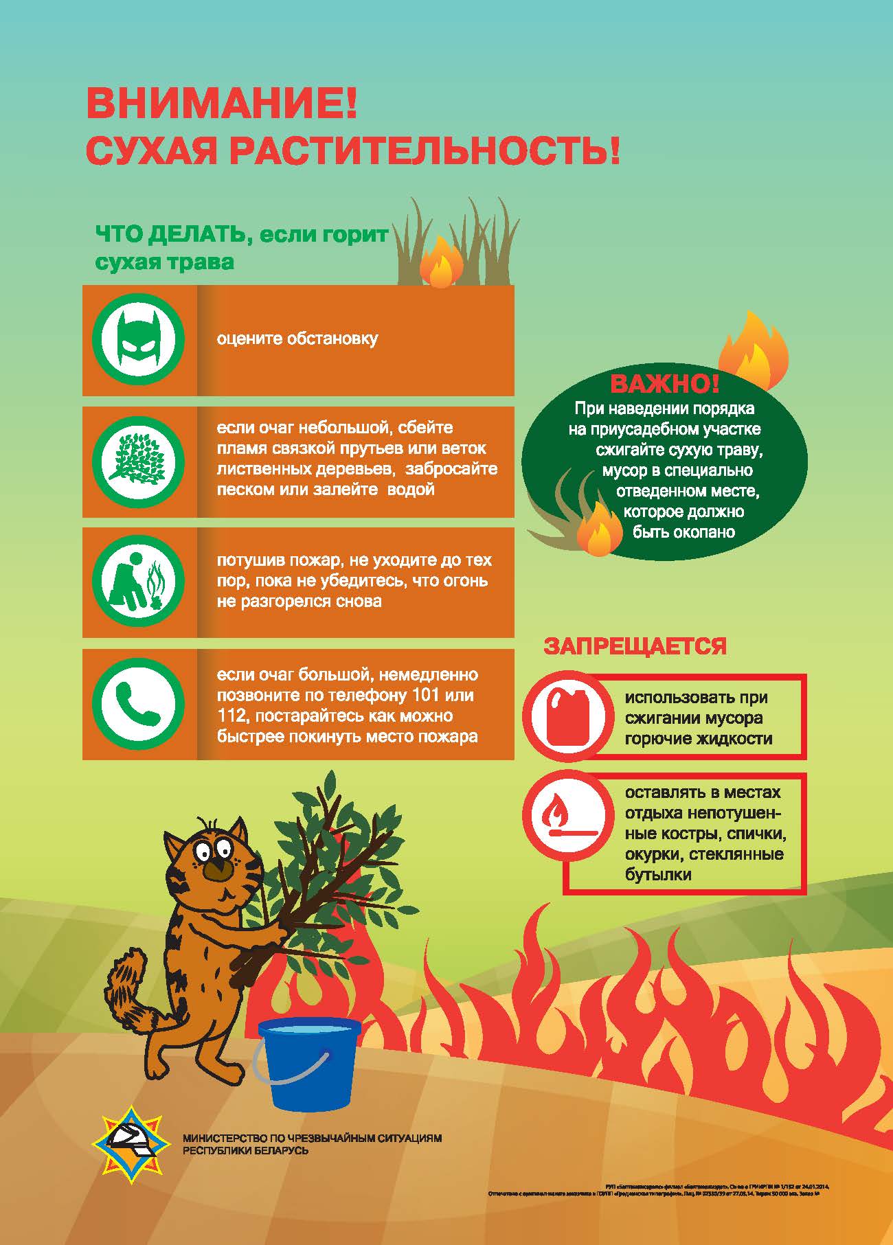 • Очистите место вокруг костра от сухой травы, окопайте его.